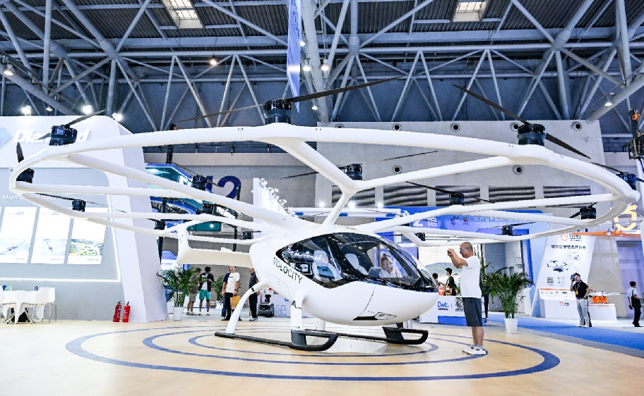 9月5日,观众在2025世界智能产业博览会上参观电动垂直起降飞行器。