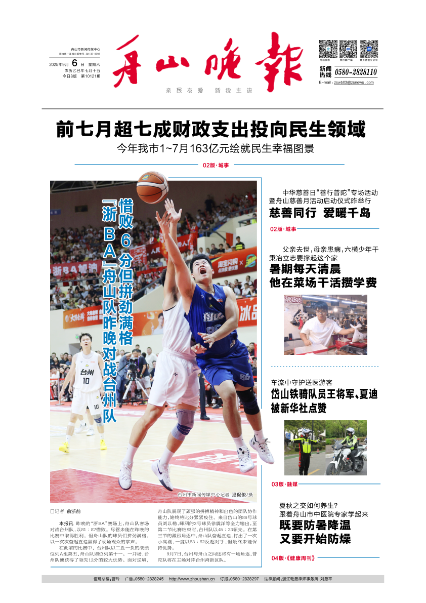 “浙BA”舟山队昨晚对战台州队