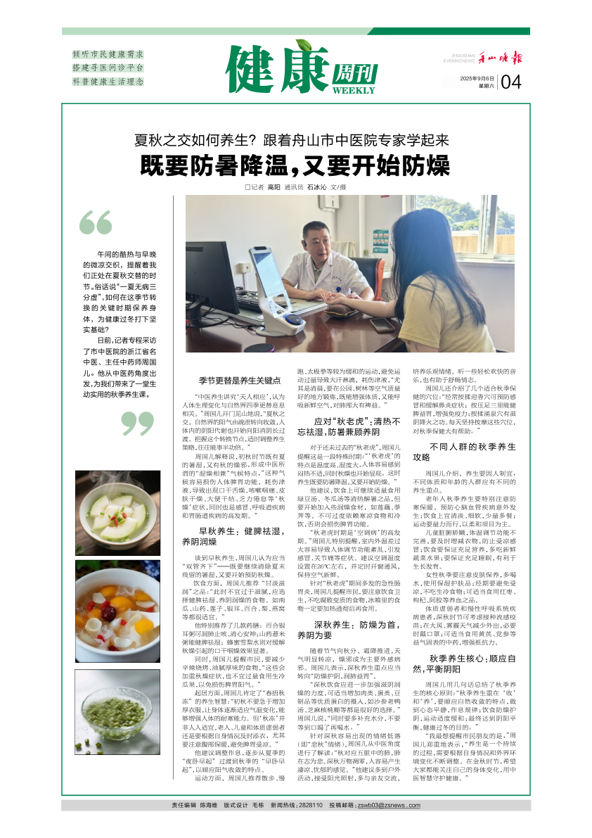 既要防暑降温,又要开始防燥