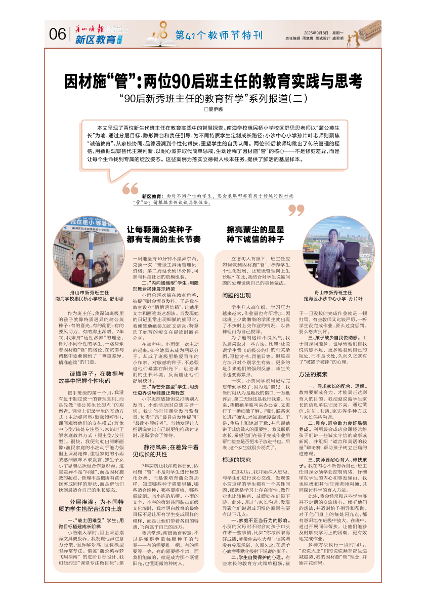 因材施“管”:两位90后班主任的教育实践与思考
