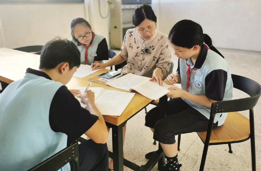 除了学习,郭英也很关注学生的情绪和成长:看到学生中午在教室啃面包,就“赶”去食堂好好吃饭;遇到青春期冲动发脾气的学生,冷静化解他们的焦躁情绪;指导家长如何与青春期孩子相处,帮不少家庭解开了亲子沟通的“小疙瘩”……