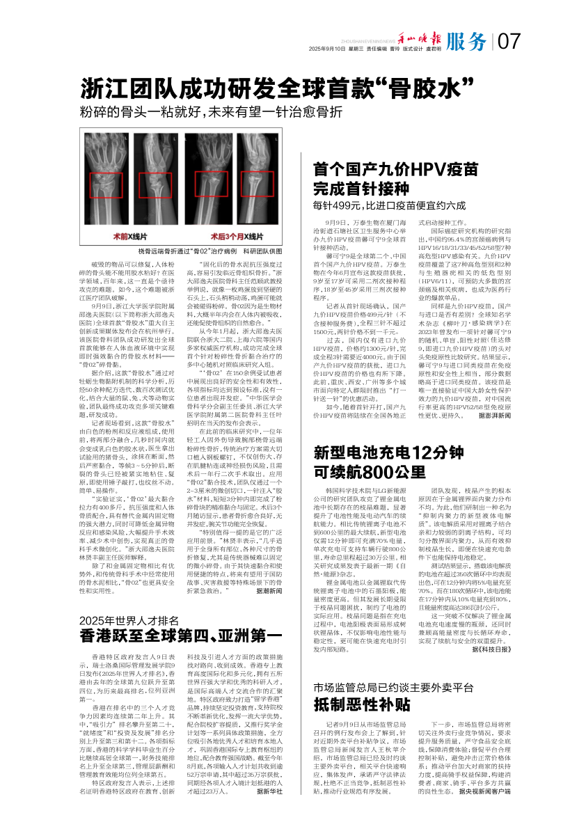 浙江团队成功研发全球首款“骨胶水”
