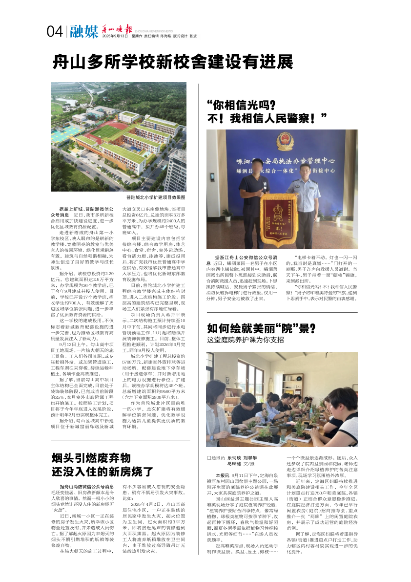 舟山多所学校新校舍建设有进展