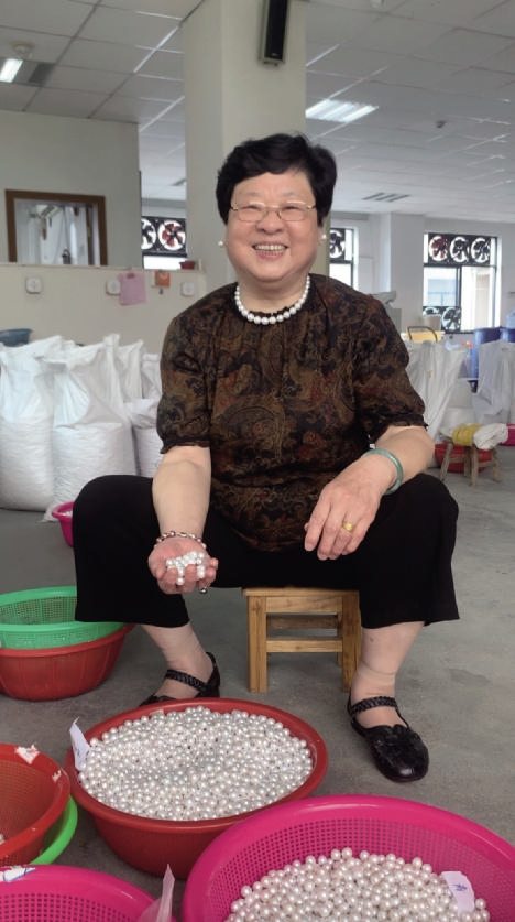 在这片孕育珍珠的土地上长大,何仕珍对珍珠的热爱早已深入骨髓。30多岁时,她开始养殖珍珠。自家门口那片小小蚌塘起步,何仕珍一家子的珍珠生意越做越大,脚步也越走越远。在何仕珍及其儿子孙子三代人的努力下,他们的珍珠生意如今已辐射至江苏、安徽、河南等地区。