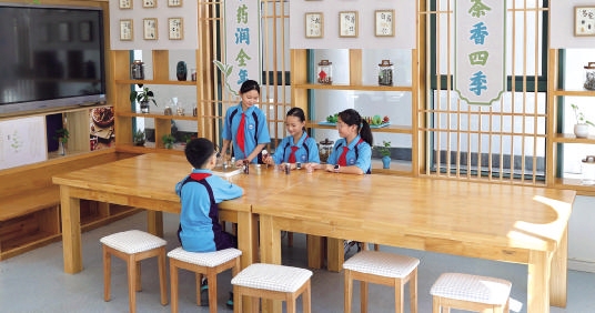 本报讯 新学期,沈家门第四小学结合“药草芳香”校本特色课程,精心为孩子们打造了中草药茶饮室。