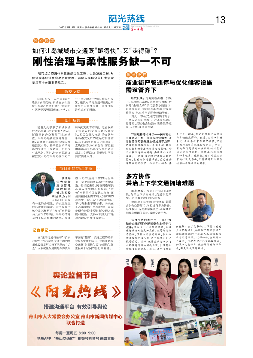 多方协作共治上下学交通拥堵难题