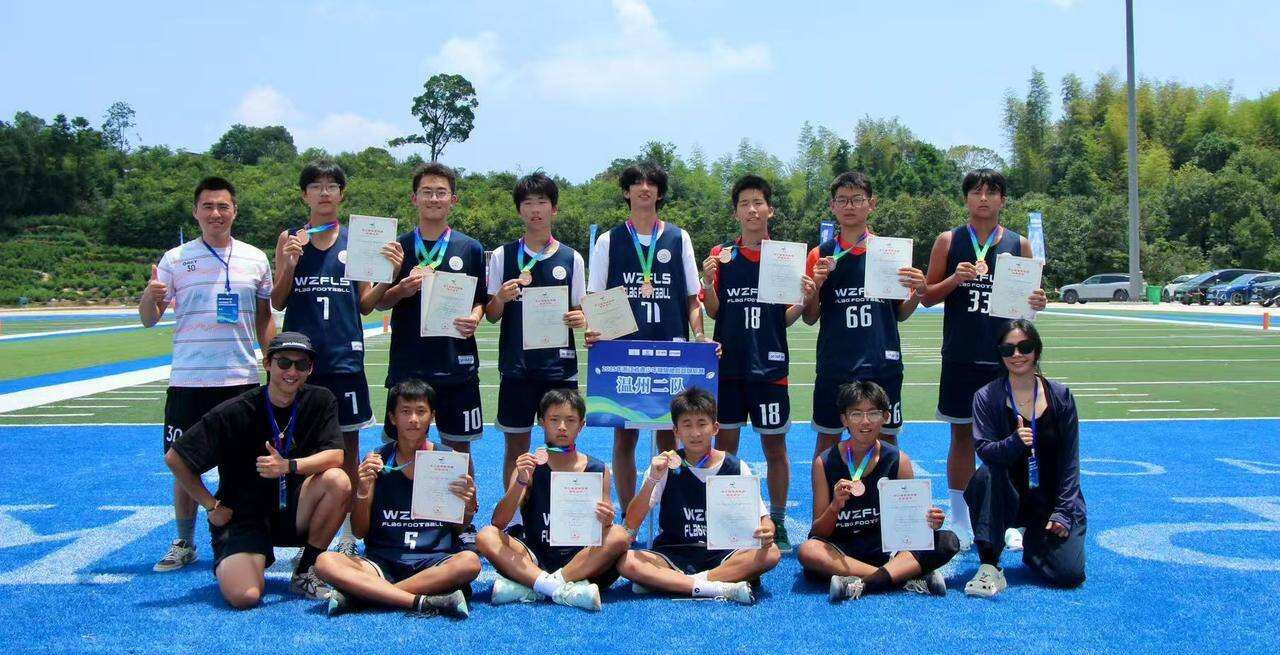 2024年温州市举办了第一届青少年橄榄球比赛,陈晓清和儿子学校的体育老师黄敬伦一商量,临时组了一支队去参赛,结果拿到了温州市的第四名。这次的省锦标赛是以这支队伍为班底组建的,也是孩子们的第二场大赛。陈晓清是球队的副教练,结果只打算去见见世面的孩子们,拿到U15年龄组的季军。