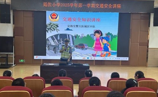 本报讯 近日,市公安局交通管理支队定海大队警官张浩走进定海廷佐小学,为该校五年级学生带去了一堂生动有趣的交通安全主题讲座。