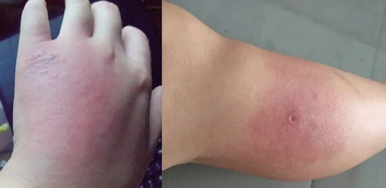 吴建雄介绍,蜂的尾刺连接着毒腺,蜇人时会注入毒液,蜂毒中含有的组胺、磷脂酶、透明质酸酶等物质,会导致被蜇部位立即出现红、肿、热、痛等局部毒性反应。