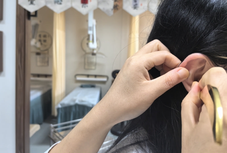 耳穴压豆在耳廓上贴上王不留行籽,精准按压肾、神门、心、内耳、外耳等穴位。“耳穴压豆相当于‘长效刺激’,患者回家后每天按揉3~5次,每次1~2分钟,可持续调节脏腑功能,巩固治疗效果。”金迪说,按揉时以感到轻微酸胀为宜,避免过度用力损伤皮肤。