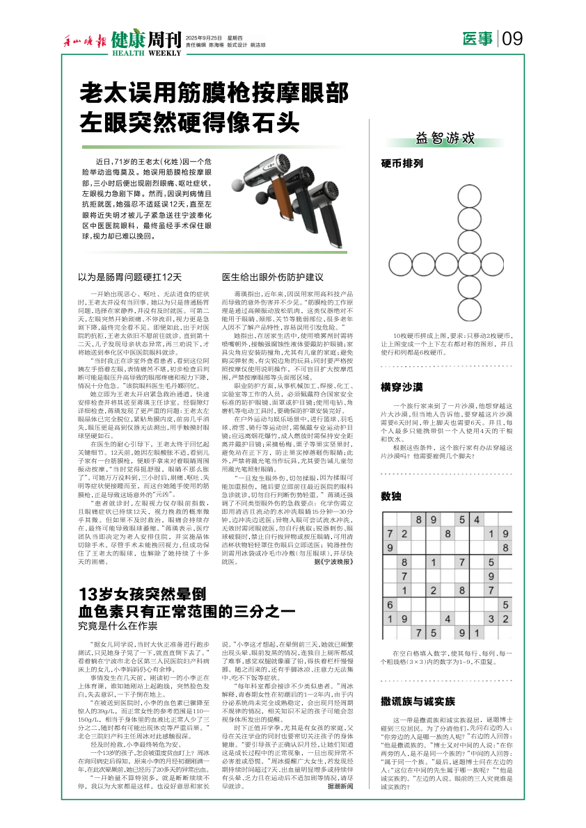 老太误用筋膜枪按摩眼部左眼突然硬得像石头