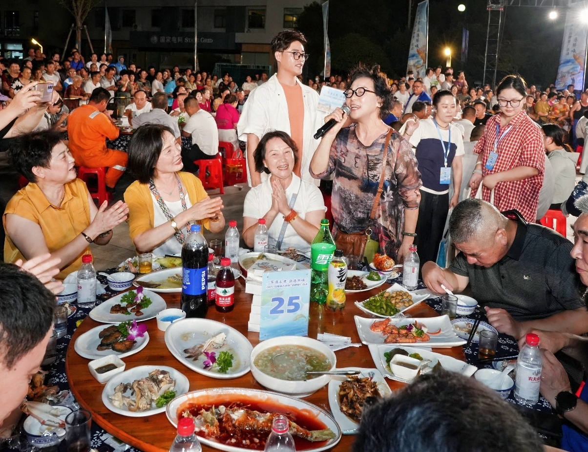 夜幕低垂,军港灯火和渔港星光交相辉映。舞龙、渔民号子、戏曲联唱、打莲湘、跳蚤舞……此时,一场尽享渔家传统文化魅力的表演轮番登台,深受观众喜爱,迎来阵阵掌声。