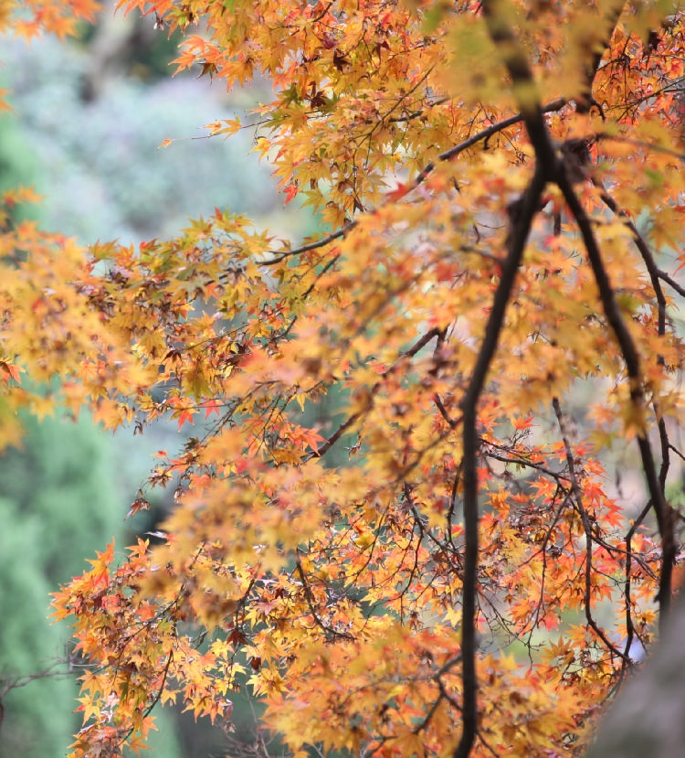 秋日的韵味,还散落于城市的各个角落,每一处皆引人驻足。舟山中学校门口的那排栾树,曾于某个秋日因台风添得几分诗意——风将细碎的黄花吹落满地,铺就一条花径,足踏其上绵软舒适,空气中亦萦绕着淡淡的花香,令人不忍离去。海山公园里的那株鸡爪枫,一至深秋,叶片便自青绿转为浓烈的赤红,望去如一团跳动的火焰,连阳光洒落叶瓣之上,都跳动着暖意。众多游客专程前来取景拍照,只为将这份秋日的热烈定格。