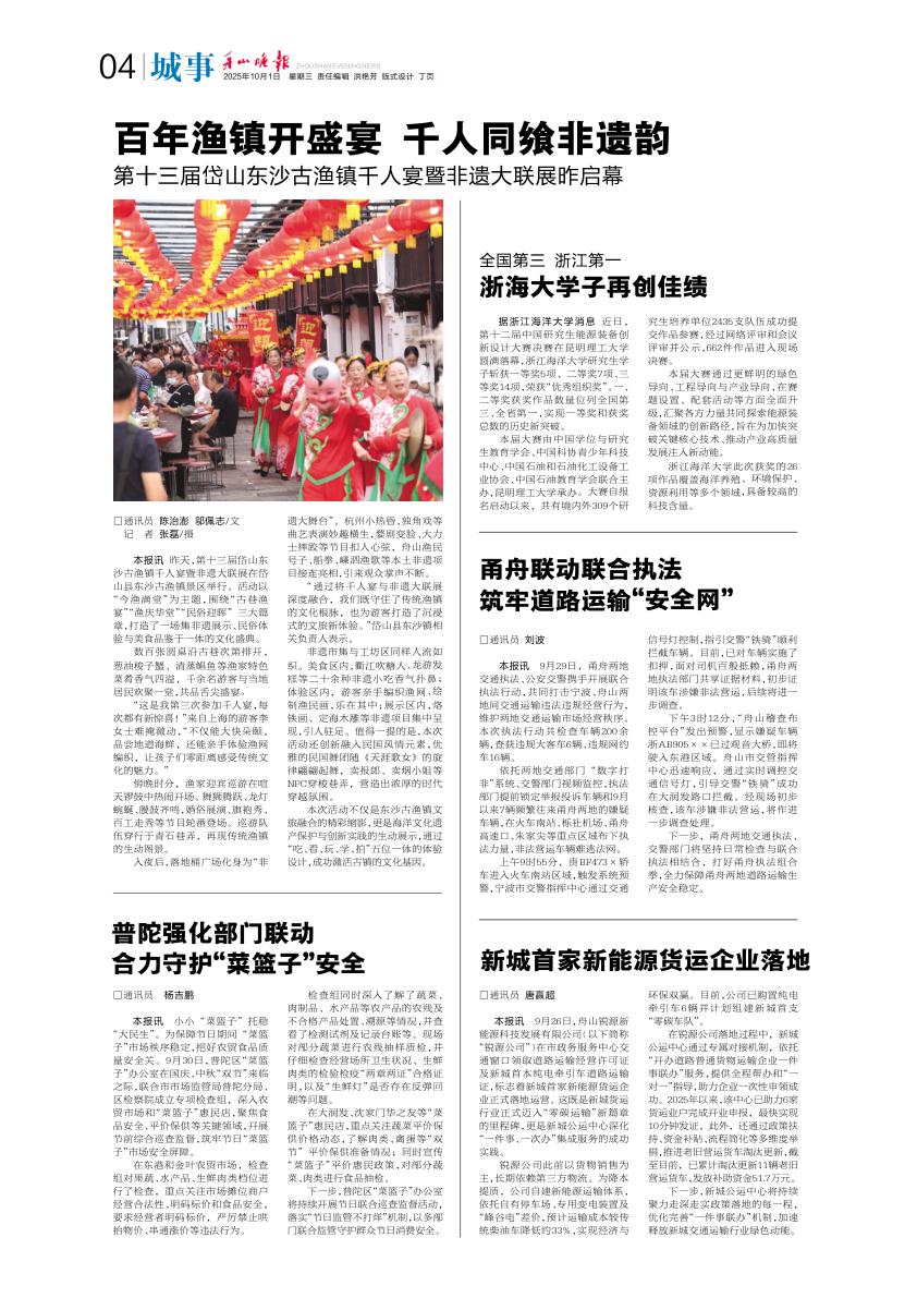 甬舟联动联合执法筑牢道路运输“安全网”