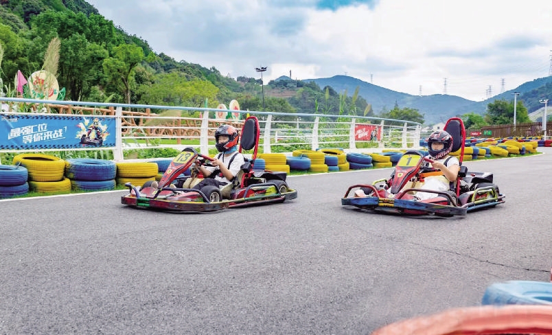 昨天,南洞艺谷景区处处洋溢着欢乐的节日氛围,文旅融合的多元体验让游客们在此尽享假期的美好时光。卡丁车竞技体验馆换上了国庆主题装扮,红色的横幅迎风招展。赛道上,引擎轰鸣,激情四溢。