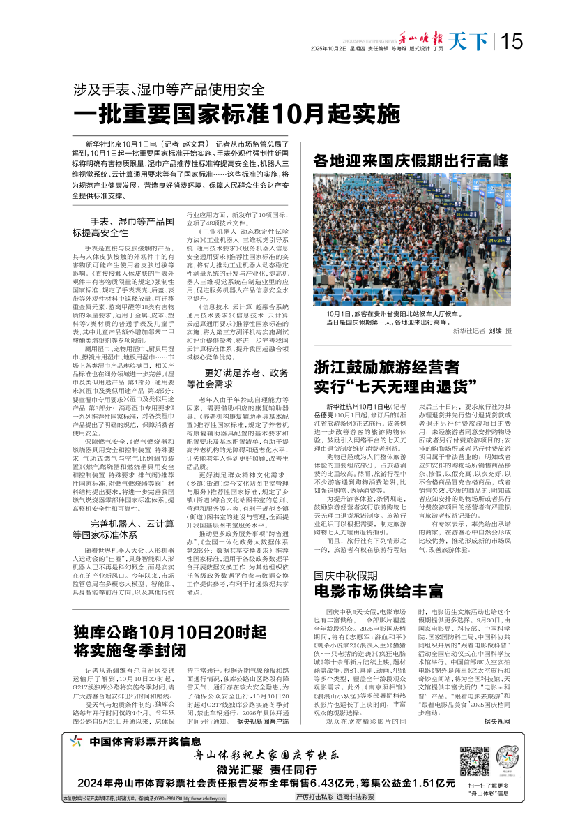 舟山体彩祝大家国庆节快乐