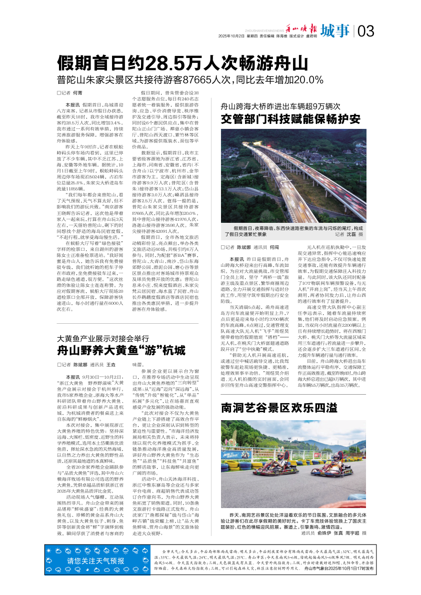 假期首日约28.5万人次畅游舟山