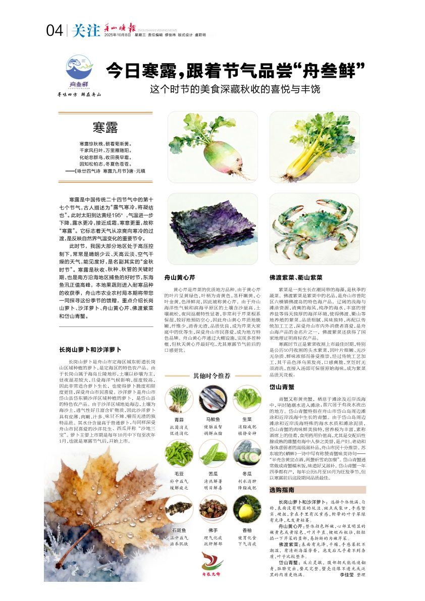 今日寒露,跟着节气品尝“舟叁鲜”