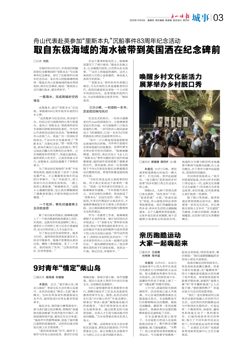 取自东极海域的海水被带到英国洒在纪念碑前