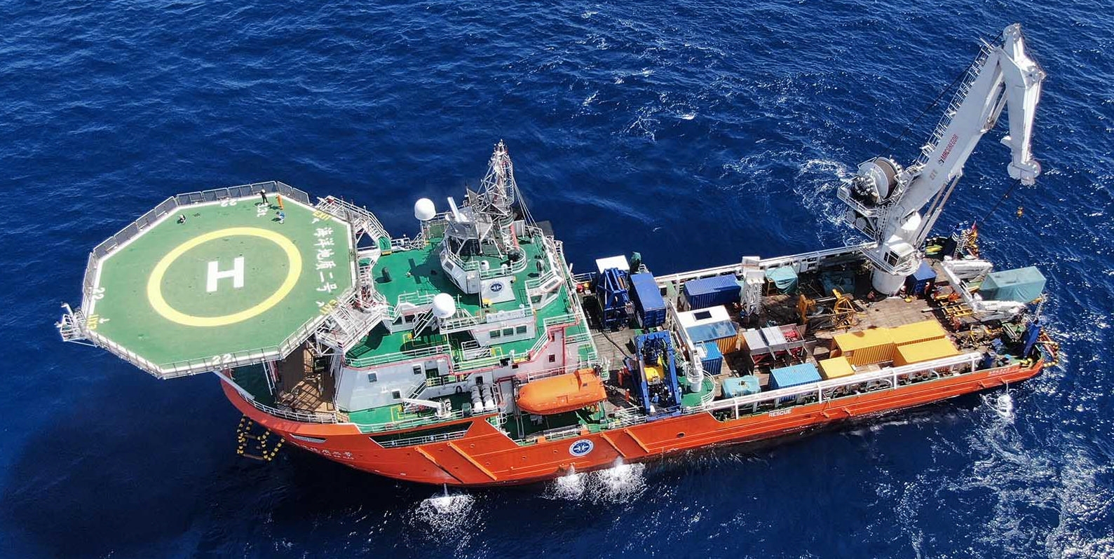 “海洋地质二号”科考船搭载“海马”号深海遥控潜水器在南海北部进行“源火”采集(9月18日摄)