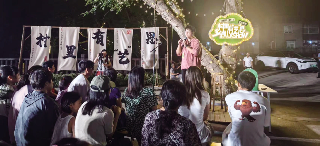 10月7日晚,位于普陀区展茅街道黄杨尖村庙后的归禾ARTERRA庭院内,笑声、掌声与欢呼声此起彼伏,打破了乡村惯常的宁静。一场名为“村里有‘艺’思”的乡村脱口秀正在这里热闹上演。