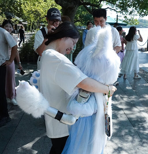 “这是我第一次在线下看到机器人,打扮得还这么可爱,太惊喜,太意外了!”刚刚与机器人合影留念的游客刘女士,一边翻看手机里的照片,一边兴奋地分享着她的激动心情。10月10日,一个身着毛绒兽装、漫步于西湖边的人形机器人,吸引了众多市民围观。