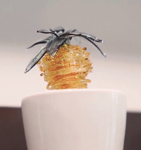 有一款栩栩如生的“菠萝”作品,看似小巧精致,制作过程却极为考验耐心和技巧。仅仅是为了完成菠萝表面纹理的拉丝这道工序,两人就反复尝试了整整一周。火焰的温度、拉丝的力度和速度,稍有差池,便会前功尽弃。