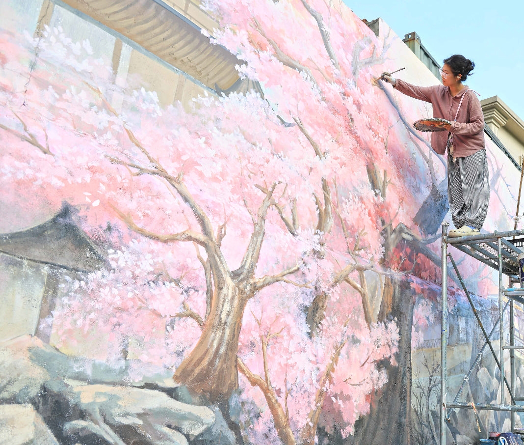 近日,普陀区东港街道南岙村,在一支网红壁画团队精心创作下,《凤凰山水》《江南春色》《山水画卷》等十余幅墙绘作品一一呈现,为美丽乡村增添一道靓丽的风景线