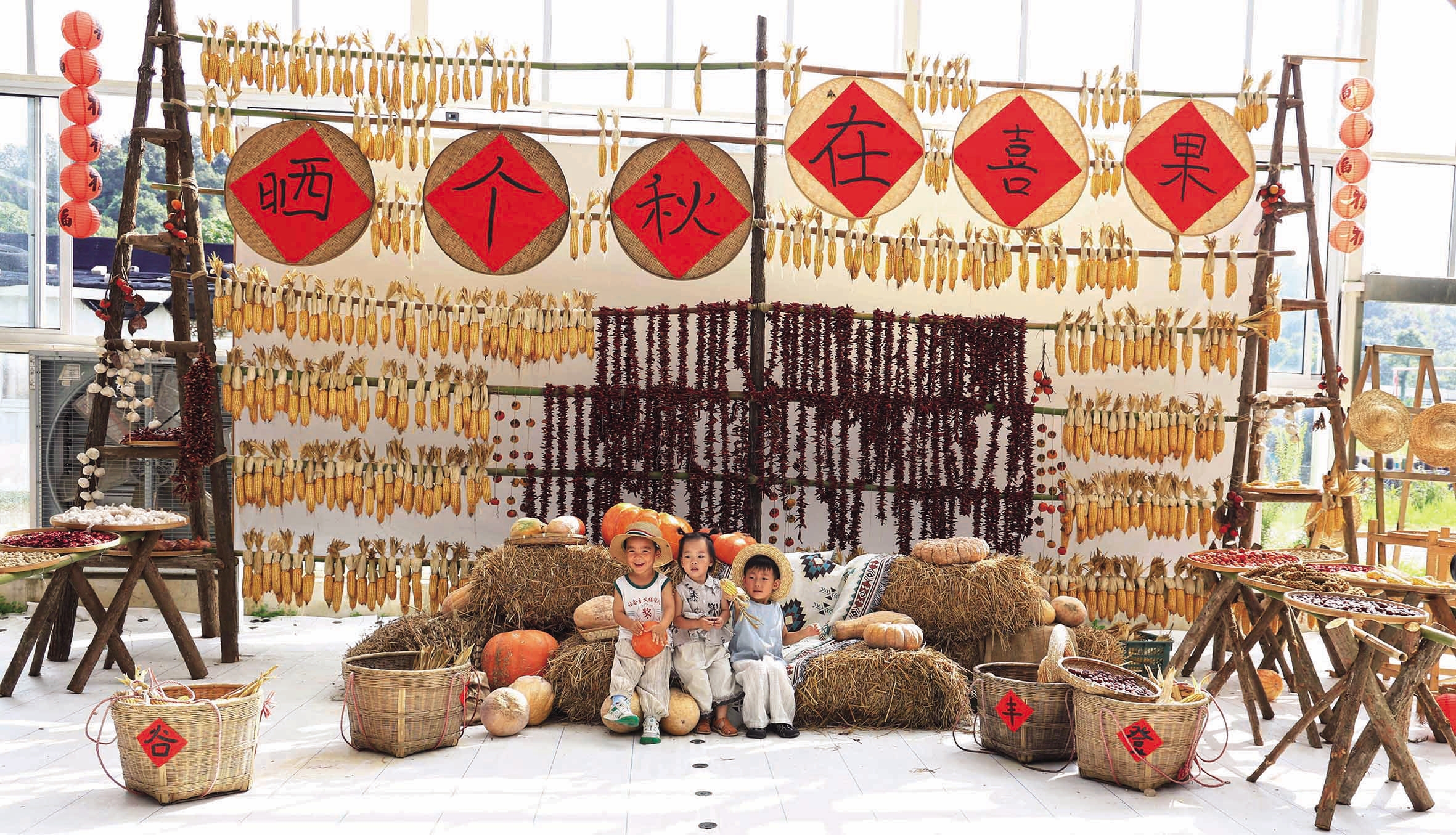 日前,新城的一家农场内布满了晾晒着的辣椒、玉米、稻谷等农作物,呈现一片丰收的景象,吸引众多游客前来体验传统晒秋农俗 记者 陈永建 摄