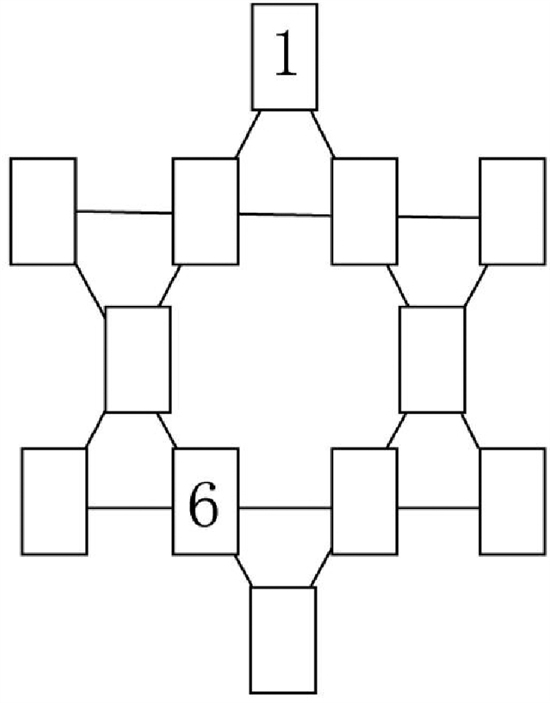 有写着1至12数字的12张纸牌按照右图的方式排列,但只能看到两张数字。