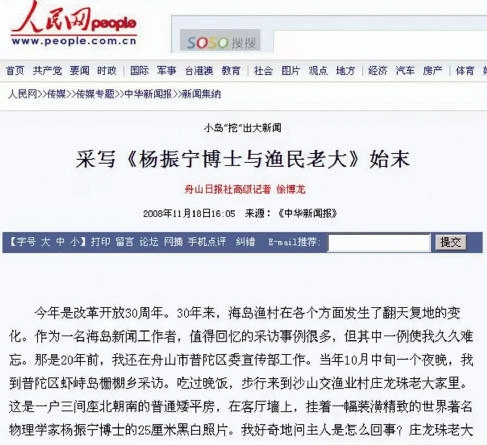 追忆杨振宁博士与舟山渔民老大的一段往事