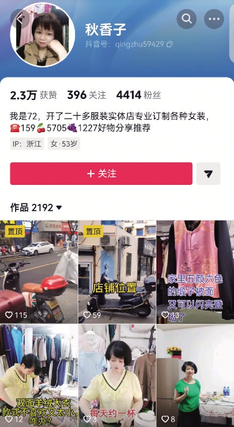 抖音“玩”出圈旧衣改造迎来“第二春”2023年,“秋香子”又一次走到了十字路口——生意再次下滑,聘请的裁缝师傅从三个减到了一个。但张水君是个乐天派,没生意的时候,就拿着手机拍点小视频发抖音,“不为别的,就图个乐子,打发时间。”