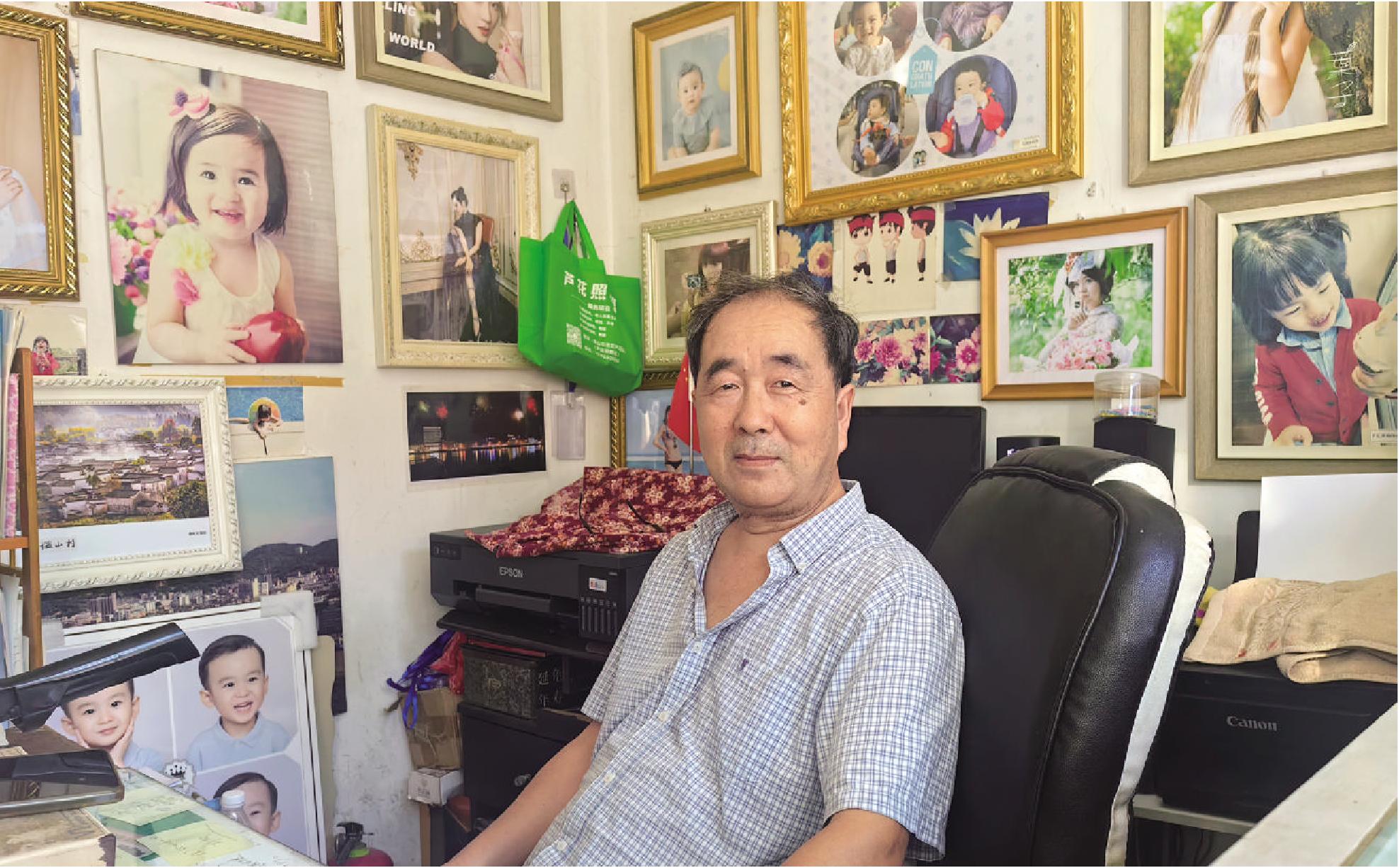 如今的芦花照相馆,暗房撤了,手工修图的工具也收了起来,取而代之的是数码相机和打印机。可阿明师傅依旧守在这里,每天开门、整理老照片、接待顾客,日子平淡却充实。“现在行情不如以前了,可附近的人要拍证件照、老照片修复,还是会来我这里。”