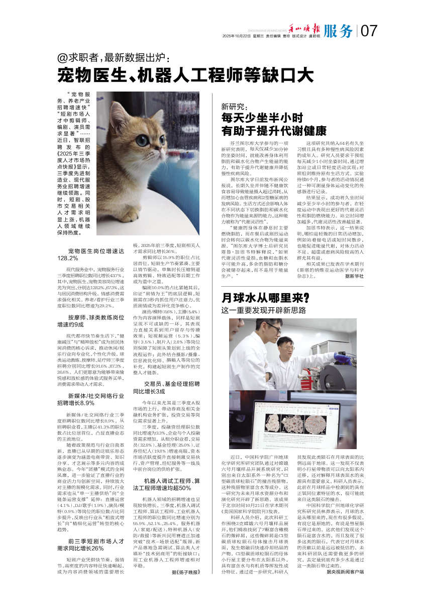 宠物医生、机器人工程师等缺口大