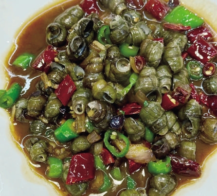 除了这些“江湖菜”,店里更不乏舟山本地人钟情的传统小海鲜。不管是清蒸、雪汁,还是葱油、酱汁……没有花里胡哨的做法,考验的是食材的新鲜度,陈列在冰柜的一排排海鲜,颜色锃亮,都是李蛟军每天早上采购回来的,鲜度十足。
