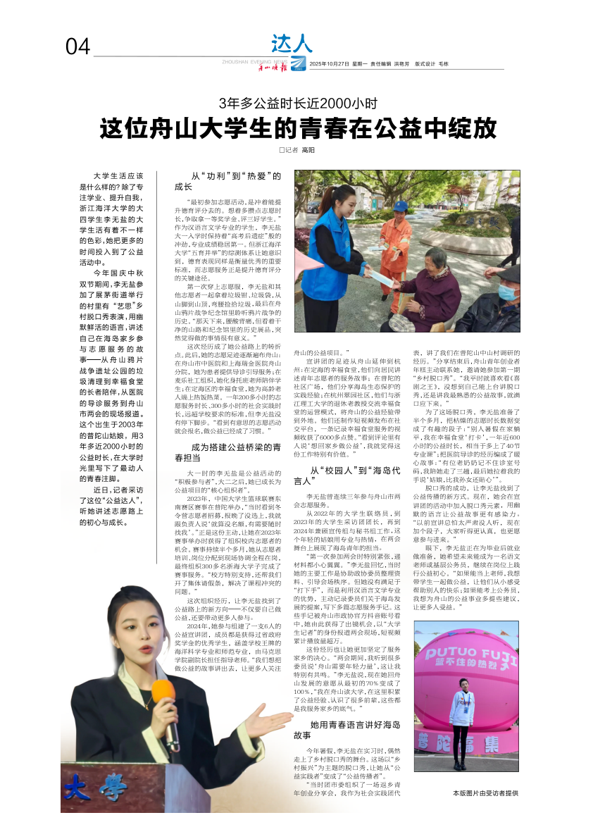 这位舟山大学生的青春在公益中绽放