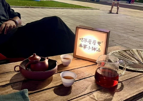 也有人问我,图个啥?赚不到钱,还搭上那么多时间和精力,不理解的人还会觉得傻。对我来说,就是图个开心和充实,赚不赚钱的不重要。自从摆了这茶摊,我每天都期待着天黑出摊,和客人聊聊天,很轻松。在这样的载体中,还能穿插一些茶文化知识,传播品牌,就足够了。
