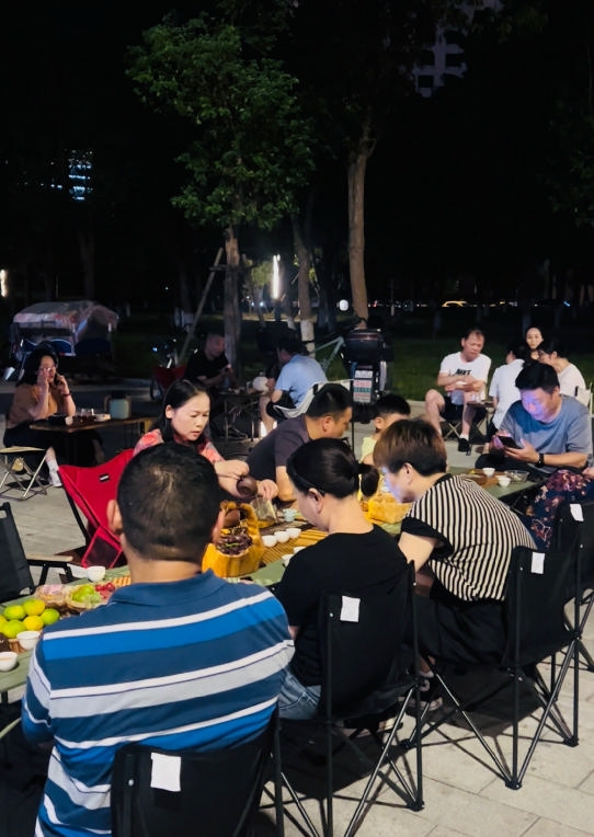 今年8月,商场为节省运营成本,到了晚上8点多,就把原本开着的两个中央空调关掉了一个。常来喝茶的老客,坐在店里越喝越热,坐不住了。有天晚上,我走出商场,无意间发现边上不到200米就有个小公园,小风一吹,还挺惬意。