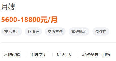 打开一条本地的人力资源招聘广告,关于月嫂的收入,“从5600元至18800元/月”。实际上,目前一名工作经验五六年以上的成熟月嫂,每个月雇主支付的报酬,多在一万五六千元。