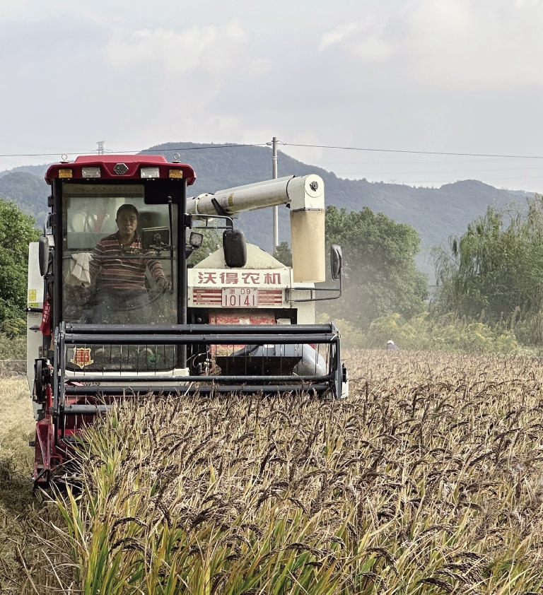本报讯 金秋十月,定海晚稻迎来集中收割,其中包括位于小沙街道的定海伯利恒农业专业合作社的50亩紫米稻。