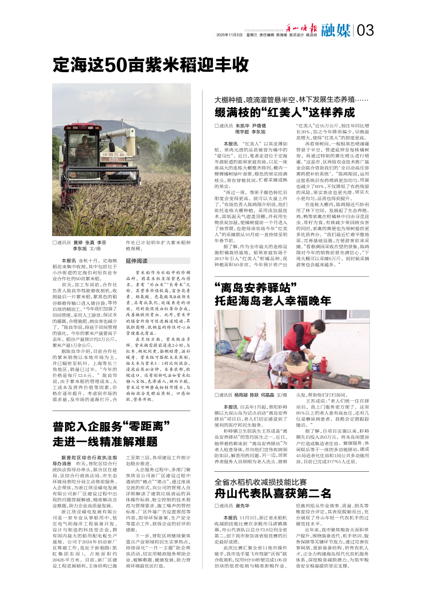 定海这50亩紫米稻迎丰收