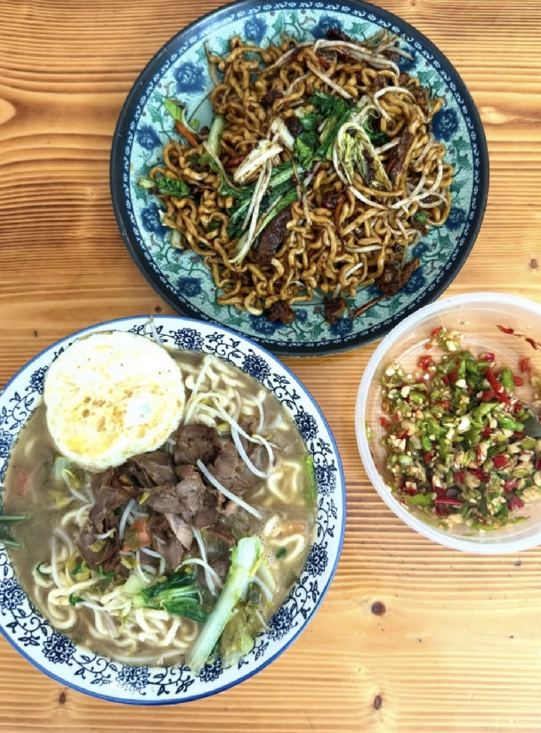一盆酱色油亮的羊肉炒面端上桌,热气蒸腾,瞬间唤醒了所有沉睡的味蕾。羊肉软嫩,青菜翠绿,而真正的主角,是根根分明的手工面条。夹起一筷,入口的瞬间,便能清晰地感受到极富韧性的弹牙感。咀嚼时,纯粹的面香与浓郁的麦味便在口中漫溢开来。