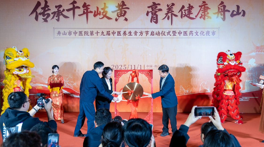 在八段锦表演、舞狮表演的热烈氛围中,第十九届养生膏方节拉开帷幕、鸣啰开膏,全国名老中医药专家倪康裕、省级名中医田义洲一起为醒狮点睛,省级名中医、医院主持行政工作副院长龙亨国与市卫健委中医科教处主持工作副处长谢琼,国务院特殊津贴获得者、全国名老中医药专家、省级名中医李飞泽共同敲响开膏锣,正式开启冬令健康调理之旅。本届膏方节以“传承千年岐黄,膏养健康舟山”为主题,旨在弘扬中医药文化,普及中医治未病、中医养生等理念。