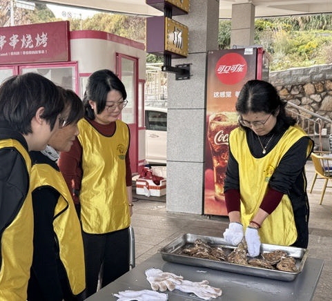 随后的“剥生蚝”环节同样精彩。渔嫂们手持生蚝刀,撬壳、取肉、装盘一气呵成,既要追求速度,又要保证生蚝完整。趣味运动更是将气氛推向高潮,最后是应急技能演练,渔嫂们在工作人员指导下模拟伤口包扎,提升自救互救能力。