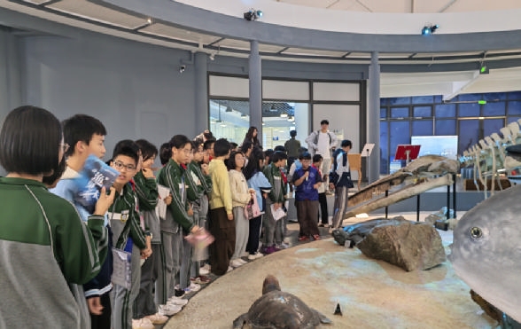 在该校航海虚拟仿真中心,大家仿佛推开了一扇通往未来的舱门。在老师的科普下,学生们了解到,现代航海早已告别“看天吃饭”的时代,进入以数据驱动的“智慧驭海”新纪元。在海洋生物博物馆,时间仿佛被折叠。这里陈列的不只是标本,更是一部活着的海洋生物进化史诗。