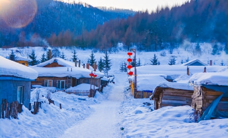 午后,你可以乘坐马拉爬犁穿行雪巷,铃铛声在静谧的山谷回荡;或是在农家炕头盘腿而坐,捧一碗地道的野生榛蘑炖小鸡,听当地人讲述“林海雪原”的传奇故事。当夕阳将雪地染成金粉色,整个雪乡便进入了它最梦幻的时刻。