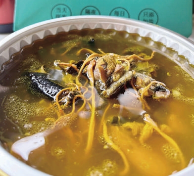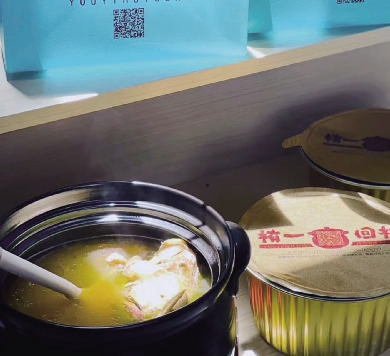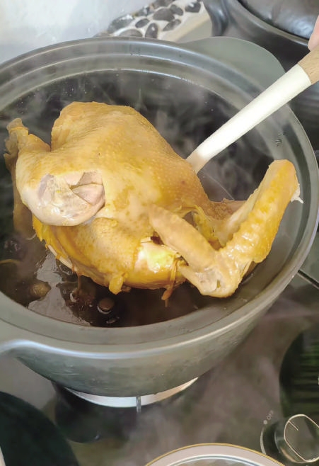 “如果觉得味道不够重,回家后可以再添加想要的味道。”余叶说,自家炖的食材,都是原有的滋味。老母鸡汤的汤面上,则泛着金黄的油花。土鸡经数小时炖煮,肉质依然紧实有嚼劲,每一口都带着山野的芬芳。舀汤入口,是鸡肉特有的鲜香,温暖直抵胃腹。