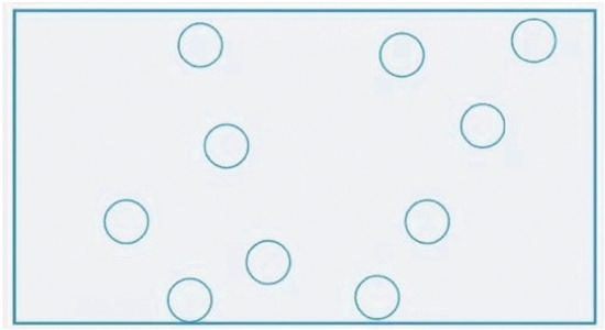 你能只用3条直线,把右图中的10个圆分成相等的5份,而使每份都有两个圆形吗?