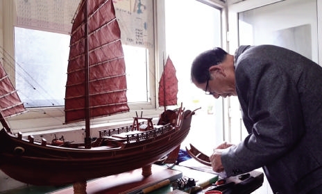 门卫室里的“造船匠”将海洋情怀刻成精美船模
