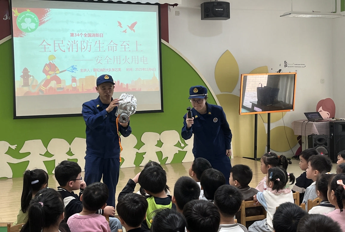 全国消防日来临之际,普陀区三盛幼儿园开展了以“全民消防生命至上”为主题的教育活动。幼儿园特邀普陀消防大队张石英干事为全体师生带来一堂生动的消防安全课,通过专业讲解和互动,为孩子们的成长筑牢消防安全防线。